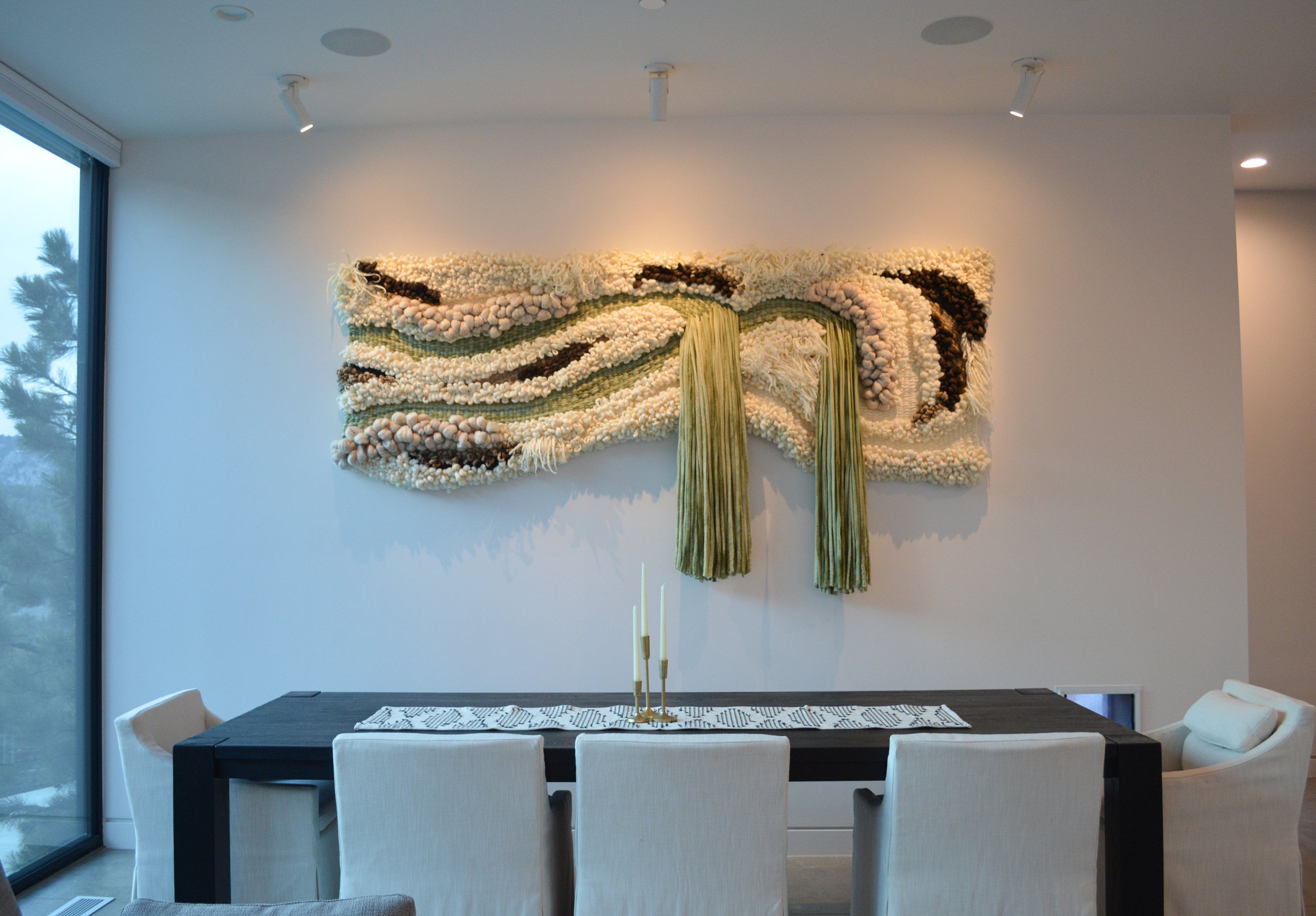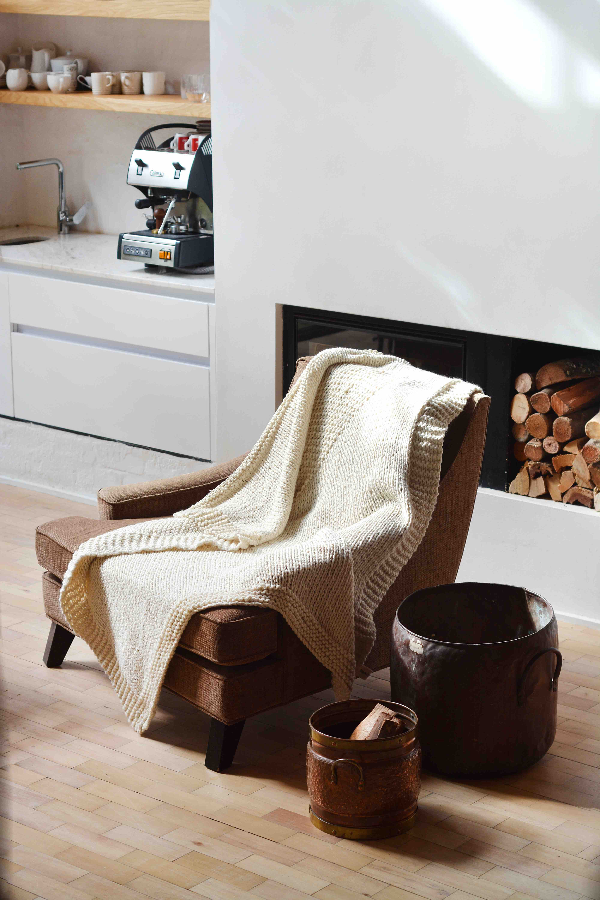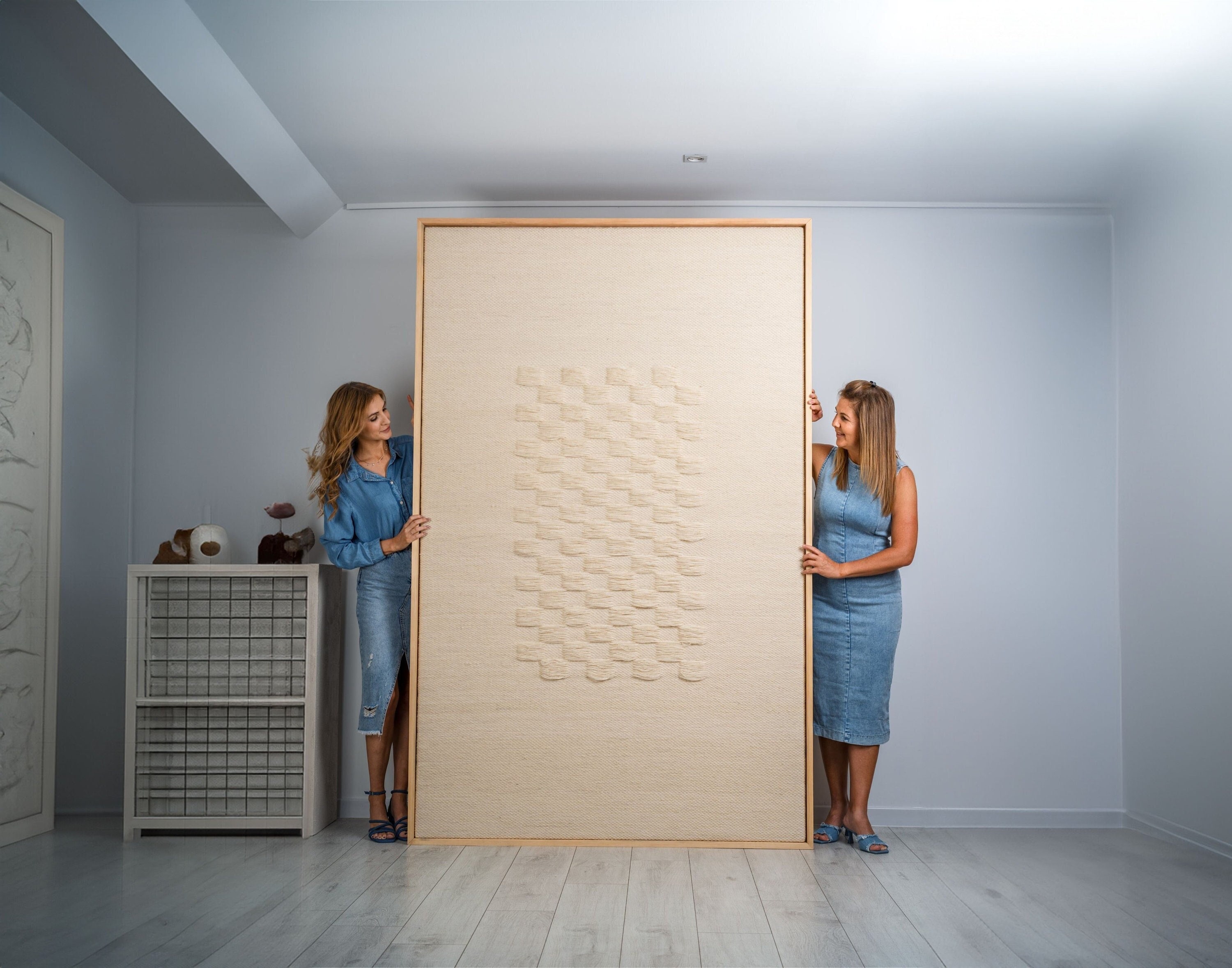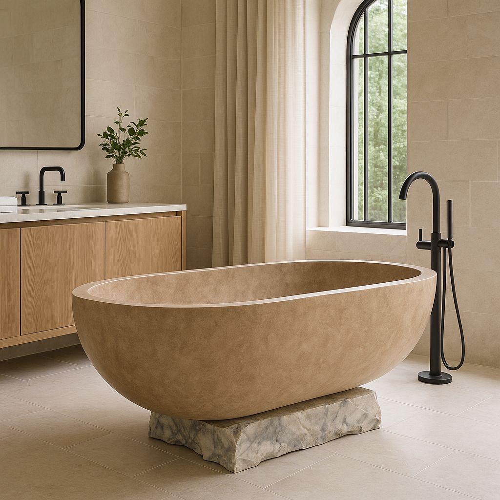 Cream Linen – Your textile base, covering bedding and the rug. Sits between white and beige with a natural, undyed quality. This is the colour that softens every hard surface and clean line in the room.