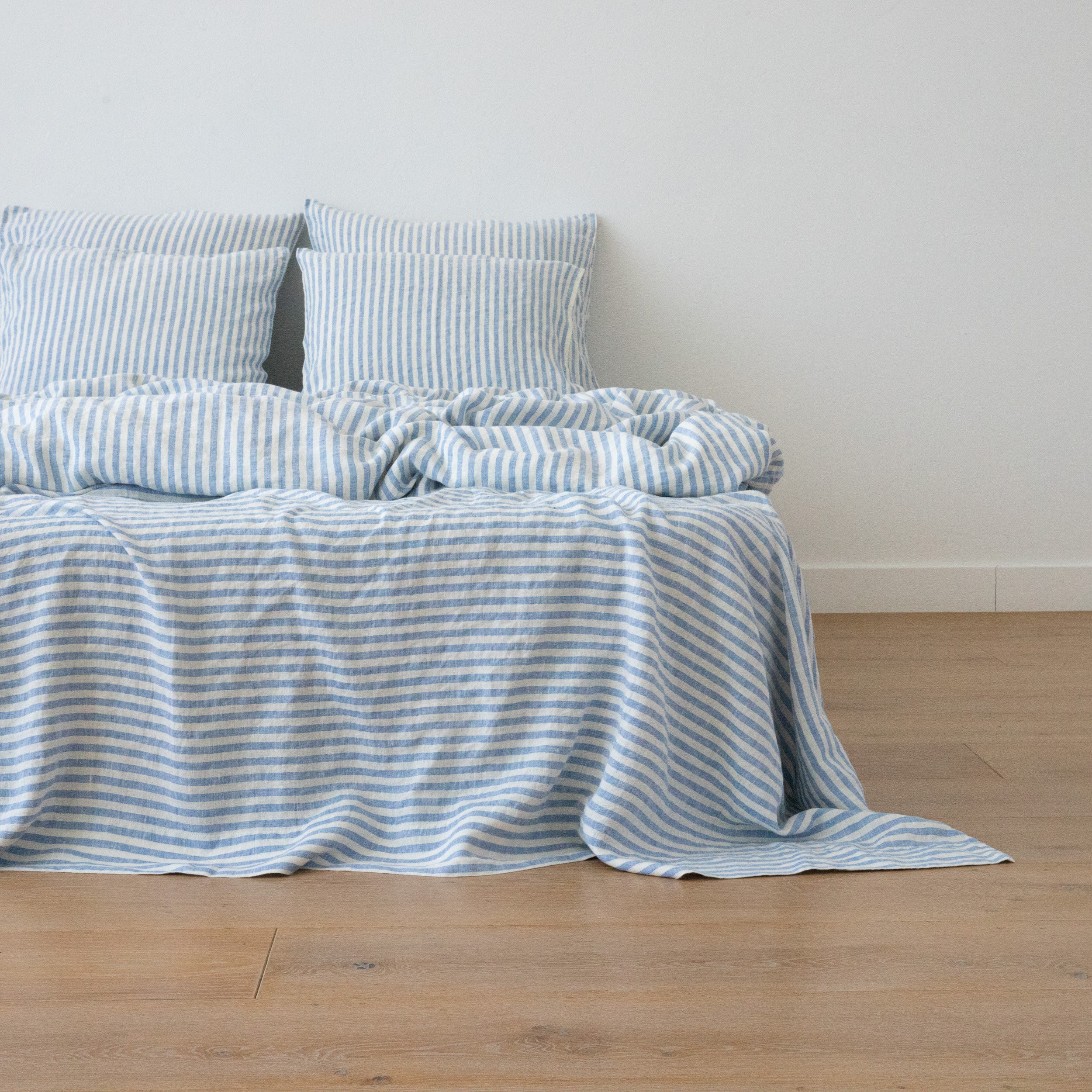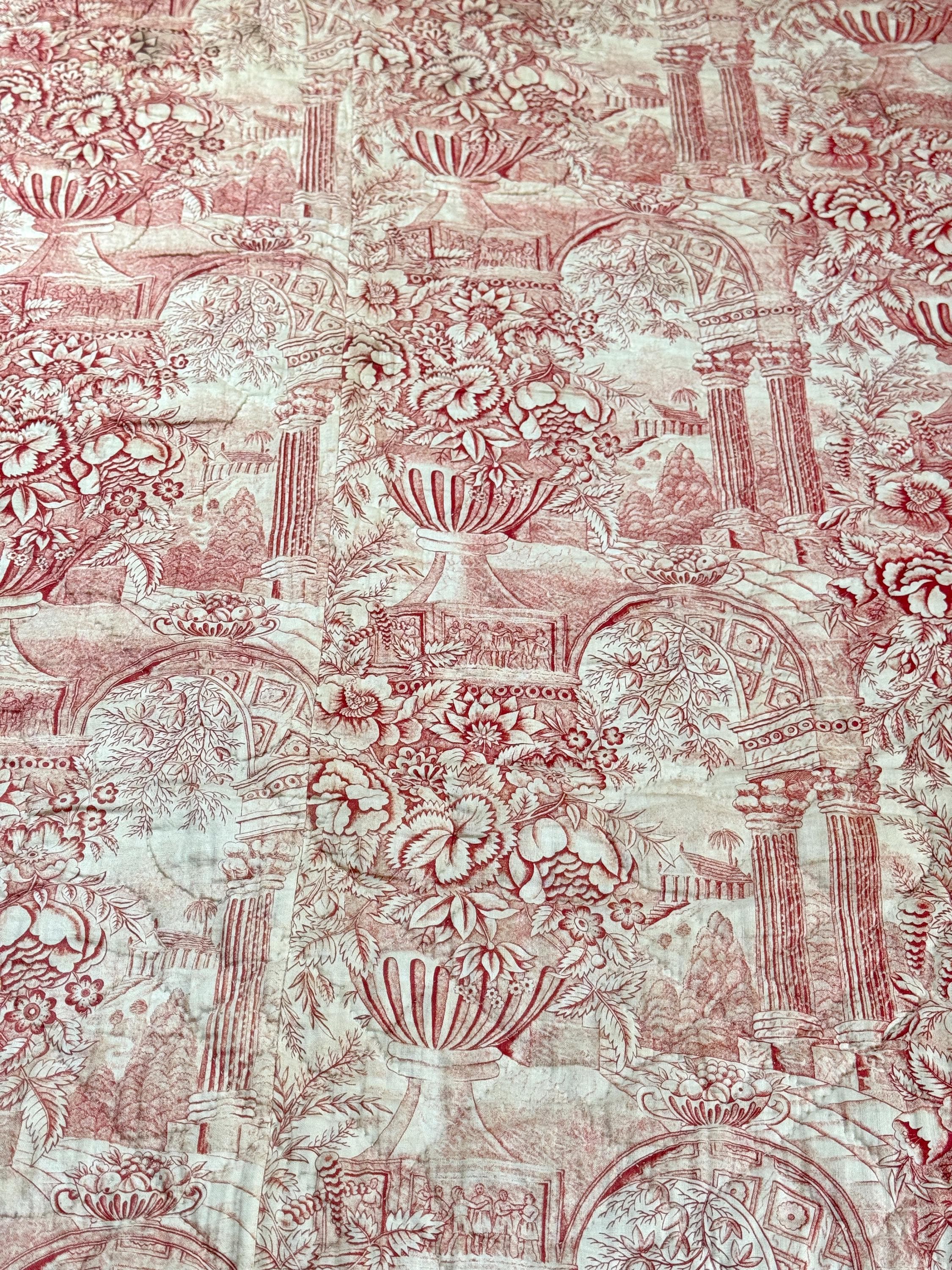 The materials do a lot of the work. Washed linen reads as both pattern and solid depending on light, because the slub of the weave gives it built in texture. A cotton chintz with a slightly faded floral looks more heritage than a crisp new one, which is why vintage sheets from eBay or Etsy are worth the dig. Layered over a quilted linen coverlet and a plain chambray sham, you’ve got pattern mixing that looks collected rather than styled.