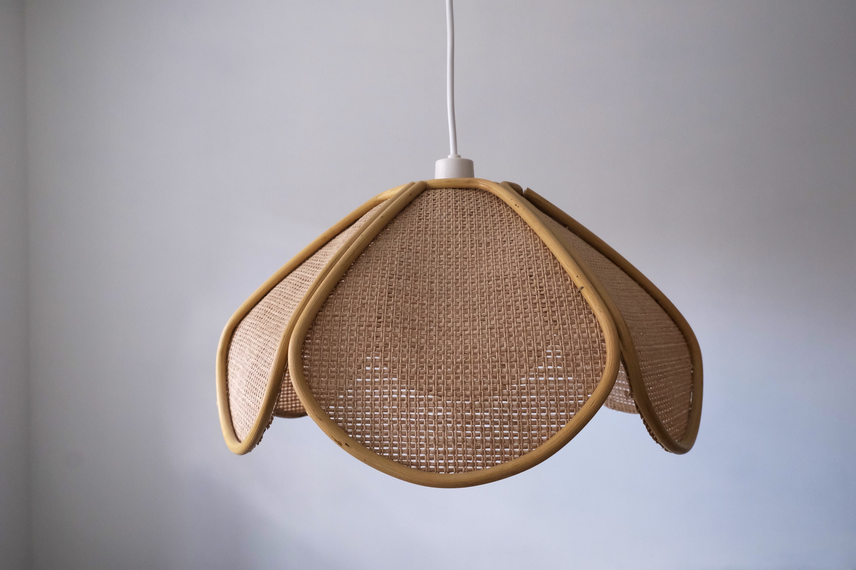 The fix that the Cotswolds interiors I keep admiring all share is a rattan, ceramic, or milk glass flush mount, paired with warm 2700K bulbs and at least two layered lamp sources on nightstands and one on a dresser. Flush mounts are having a genuine moment because the design community finally admitted that low hanging pendants in a room with anything under ten foot ceilings are just bad for the head.