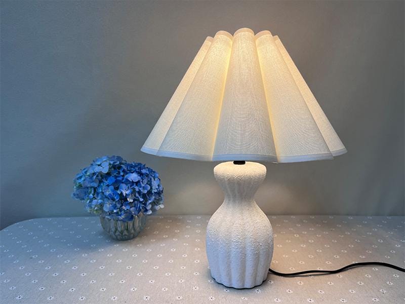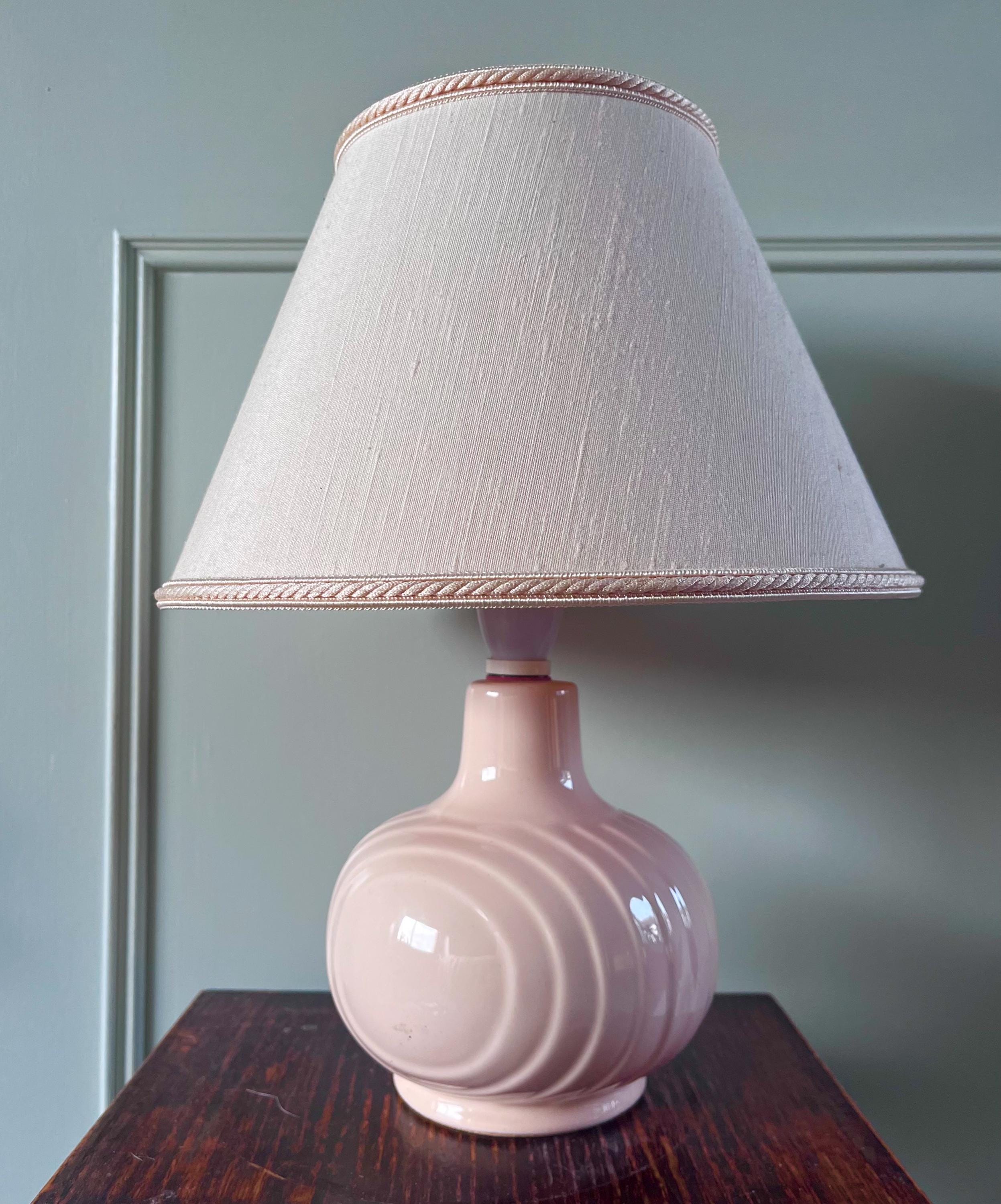 A lampshade detail that matters more than it should: pleated silk, linen drum, or gathered chintz. The unshaded bulb is the enemy. Even a cheap IKEA lamp with a proper pleated linen shade looks three times more expensive than it is. Once the lighting is soft, the last layer is what makes it feel old.