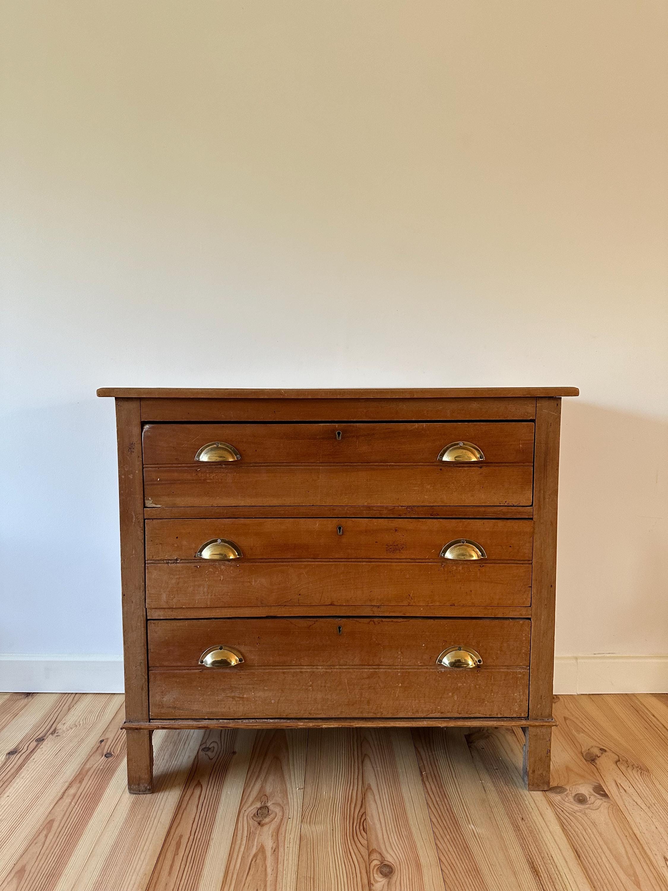 What to look for: wood that has been waxed rather than lacquered, because wax develops a patina and lacquer goes milky. Turned legs rather than straight. Brass hardware rather than chrome. Textiles washed more than twenty times, because the softness is impossible to fake. Hard perfect corners and crisp paint mean it’s repro or refinished, and either way not doing the 20 percent job.